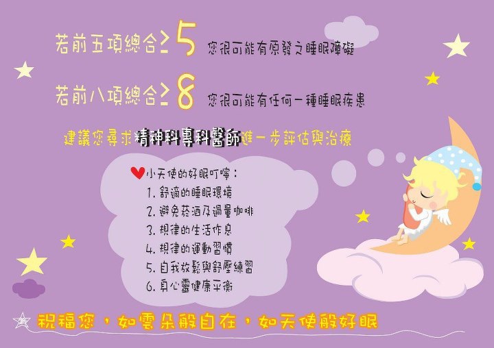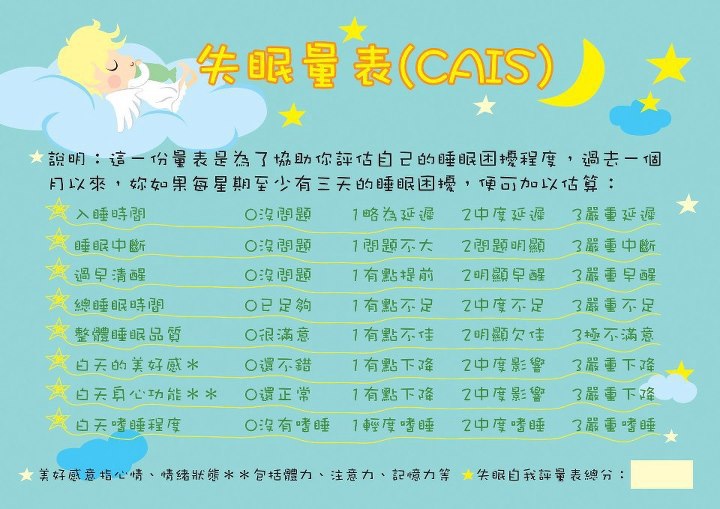 *評估白天的精神狀態,如注意力、情緒穩定、活力等等,是衡量一個人整體睡眠品質,間接但相當敏感的指標。
